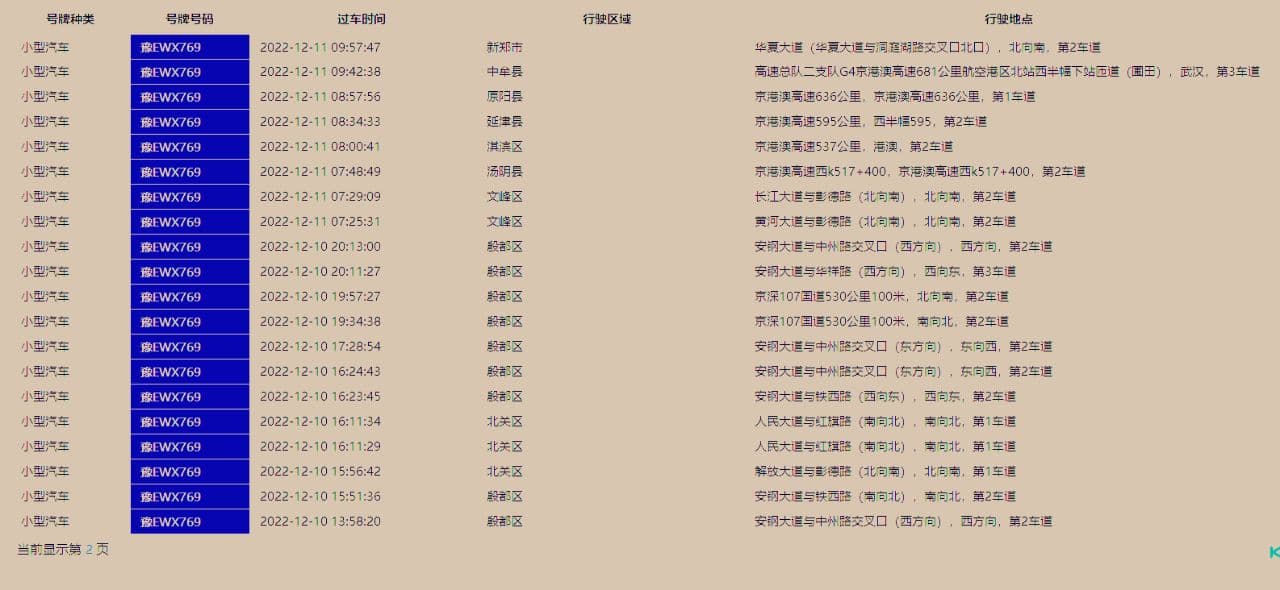 另外,如果是全国跑的话,记录跨省的卡口。如果在记录里看到卡口名(交通部专用词汇)。